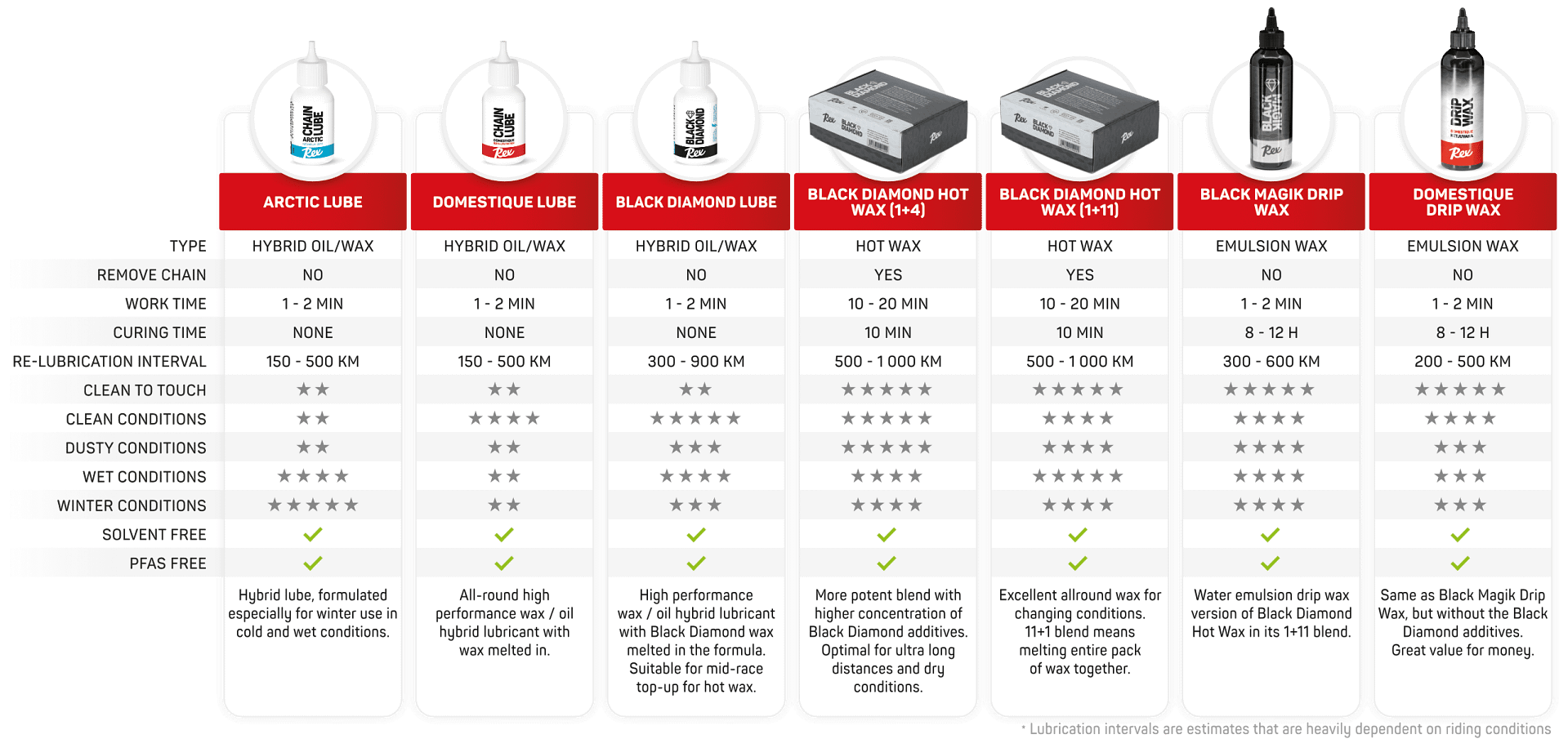 Chain lube comparison chart