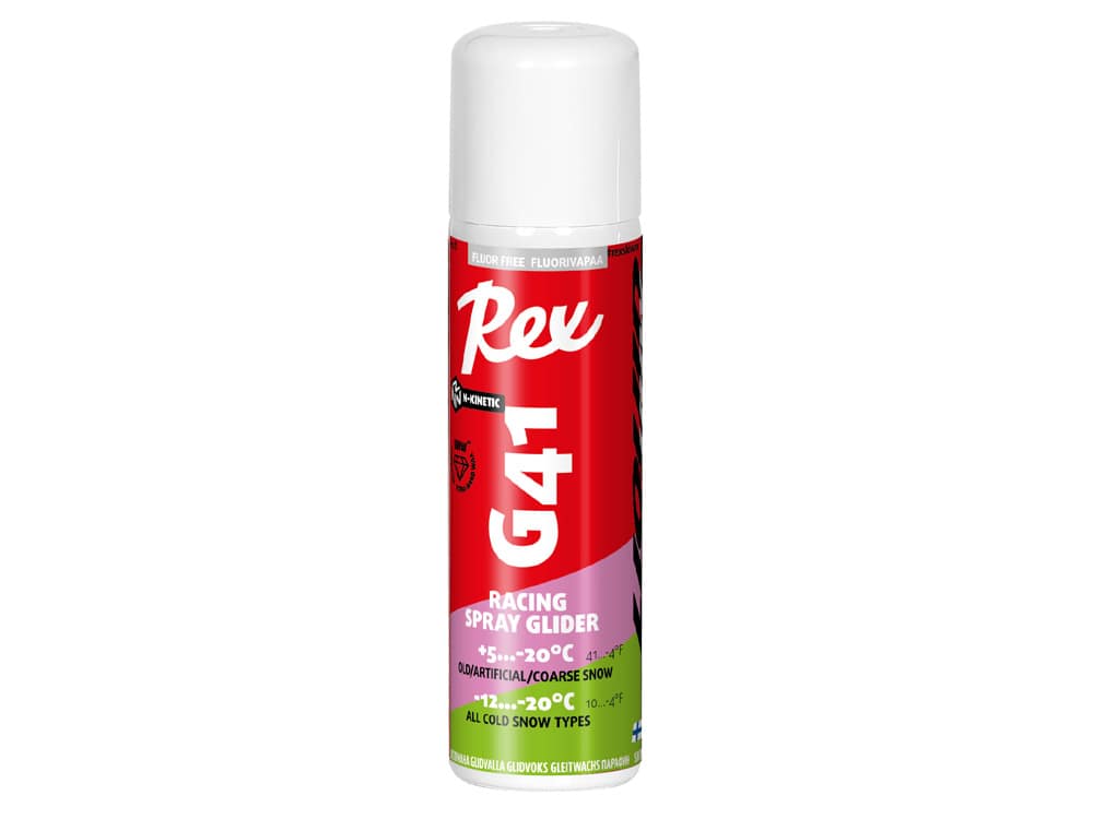 G41 is an extremely hard and wear-resistant glide wax that offers top -level performance both on cold and weary snow, and also on coarse wet snow and icy crust. Rex 2-Step CarrierTM solvent technology enables the applying of UHWTM ultra-hard glide wax, without the limitations set by hot waxing and scaping. For long distances and weary conditions, also great for alpine skis and snowboards, where wear resistancy is crucial.