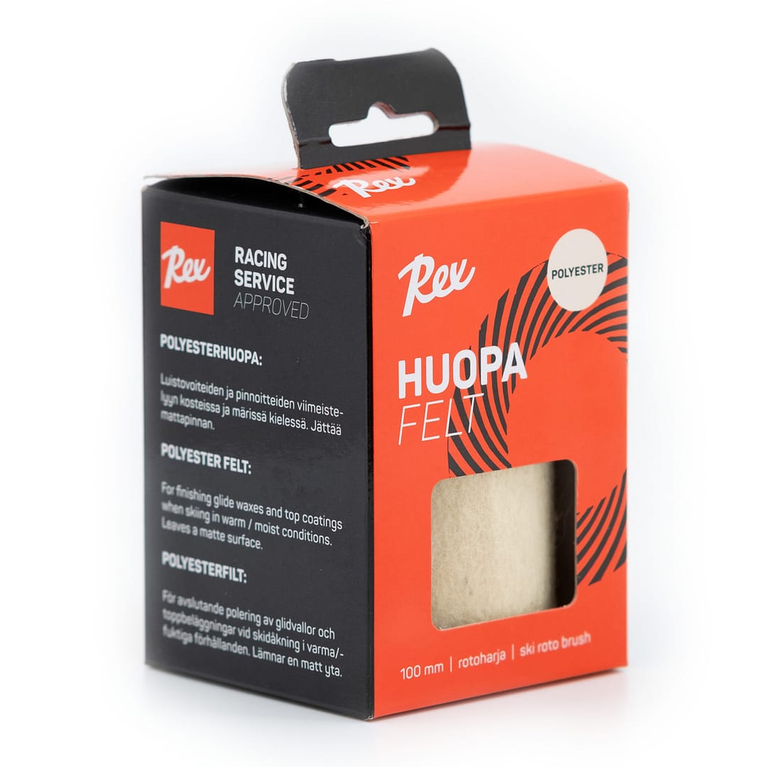 For finishing liquid glide surfaces, first apply the glide wax to the base and let it dry for about 10 minutes. Finish and polish using a felt roto brush, with overlapping motions from tip to tail.