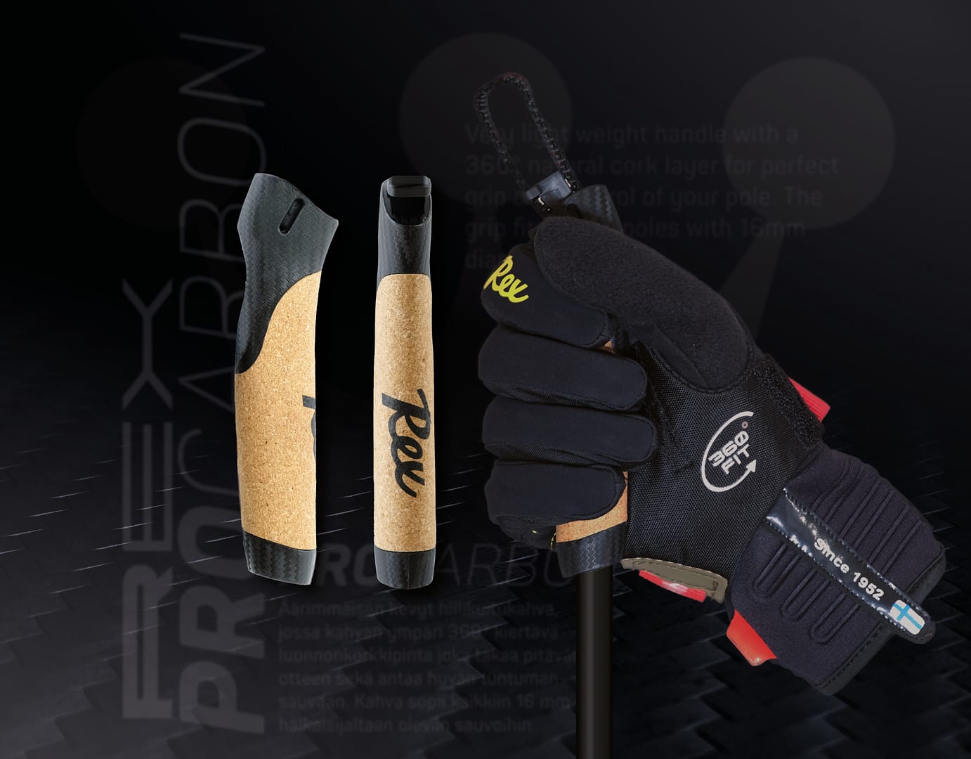 Very light weight handle with a 360° natural cork layer for perfect grip and control of your pole. The grip fits for all poles with 16mm diameter.