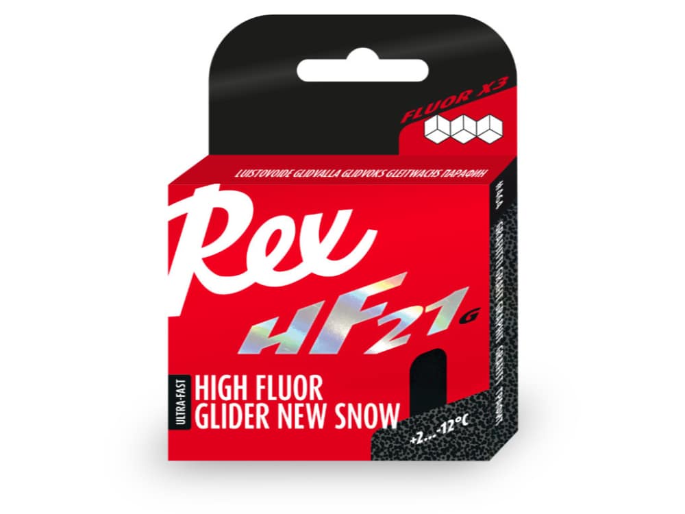 Upouusi, uudelle lumelle tarkoitettu ja tarkoin optimoidun määrän grafiittia sisältävä HF21 G täydentää Rexin uuden korkeafluoristen parkkujen sarjan. Voiteen kovuus asettuu HF11 keltaisen ja HF21 sinisen väliin. Sulamispiste n. 130°C. Saatavilla myös nestemäisenä spray-versiona.